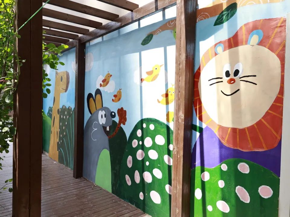 该团队走进长岭社区,以画笔为媒,将斑驳墙面蜕变为艺术画卷,让平凡石墩化身“网红打卡点”。他们通过“调研-设计-绘制-维护”的全链条服务,将居民的心愿转化为墙上的斑斓风景,为社区注入青春活力与文明新风。自2022年起,这支师生团队便与腾龙、长岭社区结下深厚情谊。他们深入调研居民需求,将卡通童趣、自然花卉等元素融入石墩与墙面,让艺术与生活浑然天成。如今,孩童在彩绘石墩旁嬉戏,居民们驻足打卡拍照,原本单调的角落成为社区最灵动的风景线。