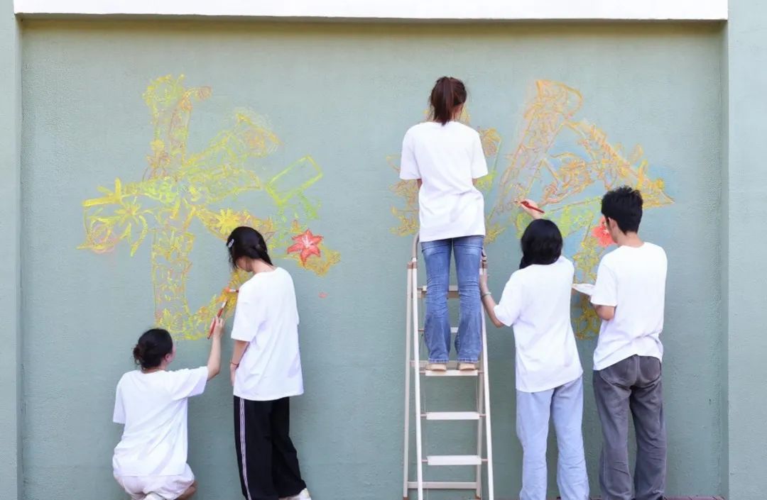 四年坚守,团队累计完成超400平方米墙绘,妆点150余个石墩。从设计理论到实践落地,学子们深刻践行“设计为民”理念。如今,多名已毕业的学长学姐带着工作经验回归,以专业力量持续助力社区美化。一笔一画间,青春与社区共生长;一墙一景里,文明与温情悄然绽放。这支团队用坚守与创新,让社区“颜值”与“内涵”双蝶变,更将暑期实践书写成服务社会的生动篇章。