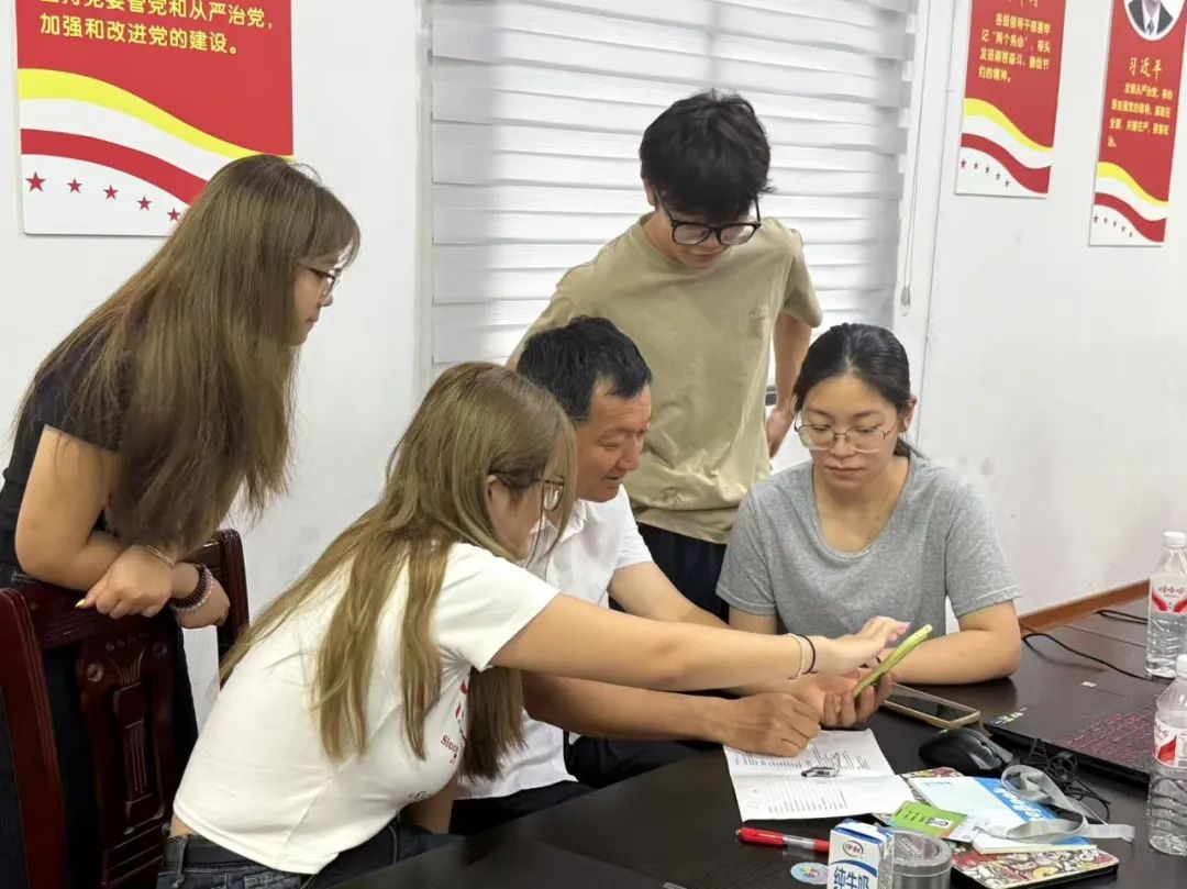 在融媒体中心,他们学习数字化传播策略,探索文旅新表达。峡口镇基层治理的烟火气中,他们与干部共议防汛民生,记录“文明积分制”的治理智慧,定格百岁老人与“老来乐”文艺队的笑容。设计组以创意为桥,完成社区宣传手册、环境改造蓝图、文艺队标识及柑橘品牌包装,每一笔设计都与乡土需求深度融合。