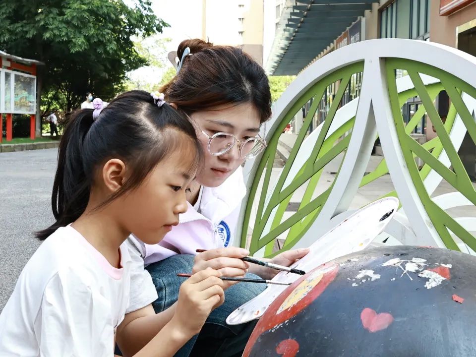 该团队连续四年深耕腾龙社区,三年携手长岭社区,他们以艺术为纽带,带着精心设计的特色课程走进社区课堂,用创意与温度浇灌孩子们的艺术梦想。