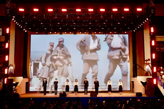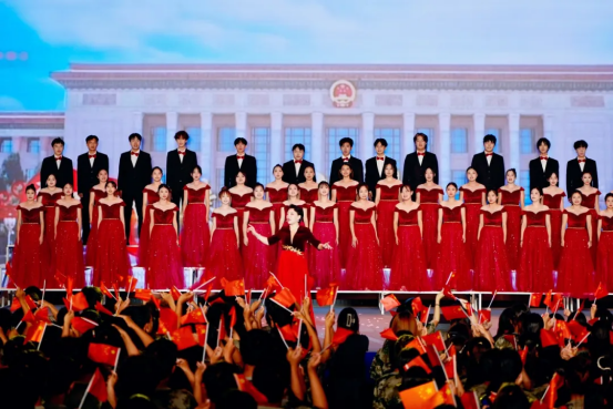 大合唱《保卫黄河》、《歌唱祖国》气势恢宏,这不仅是艺术的呈现,更是一堂生动的爱国主义教育课,激励全体晴川人将个人理想融入时代洪流。在场的所有领导、老师、同学们纷纷起立,挥动手中的闪光灯,共同唱响时代之歌,为本场晚会划上了圆满的句号。