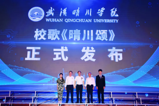 “千年黄鹤,万里长江,学府浴日荣光。龙泉环护,岚沁书香,弦歌逸韵流芳……”武汉晴川学院校歌《晴川颂》重磅发布。武汉晴川学院董事长、校长汪彬教授,党委书记翟细春,国学名师、央视“百家讲坛”主讲人、晴川书院院长李敬一教授以及两名学生代表,为校歌《晴川颂》发布仪式启幕。