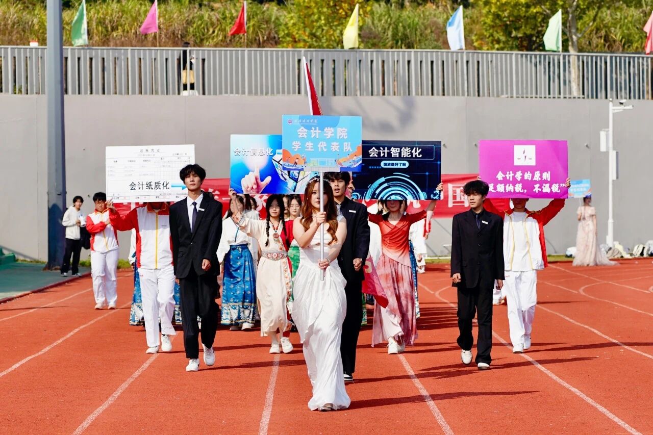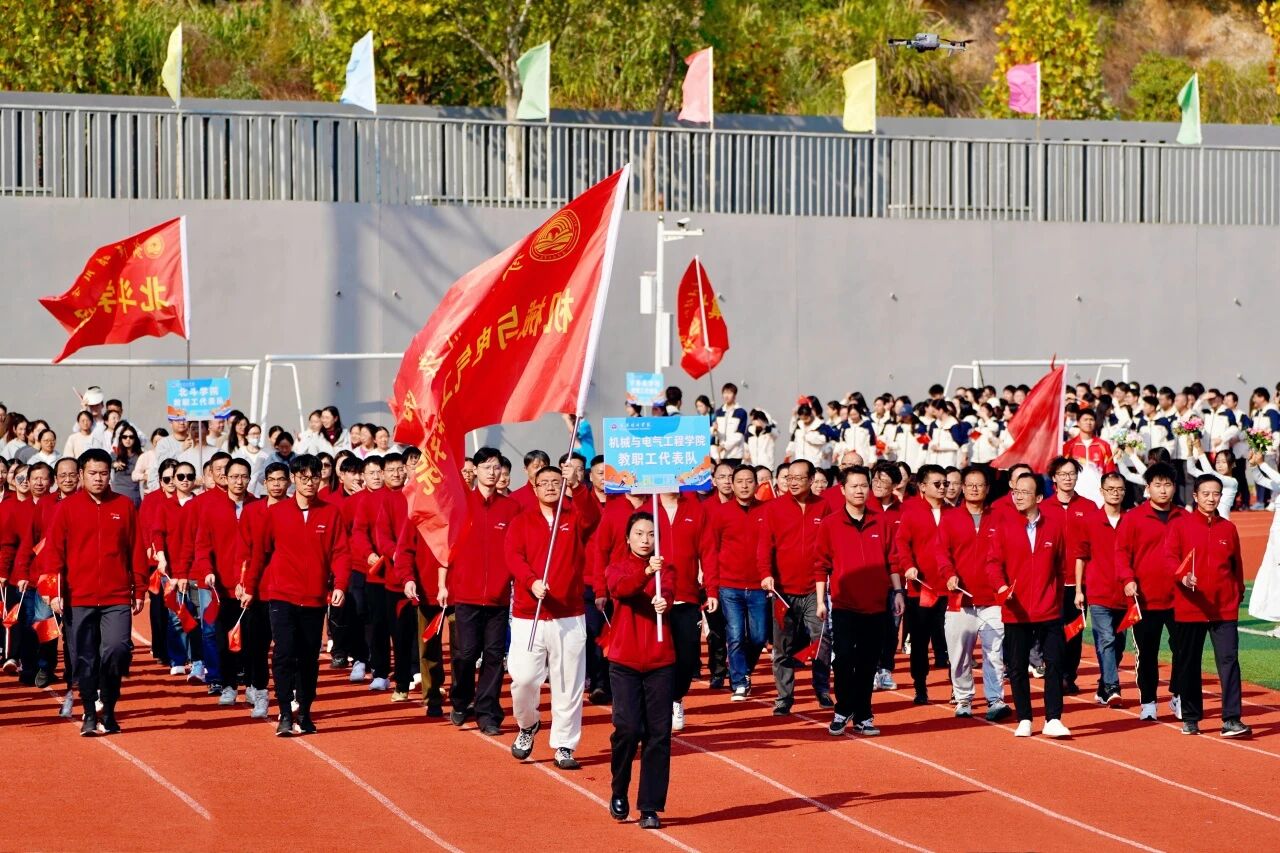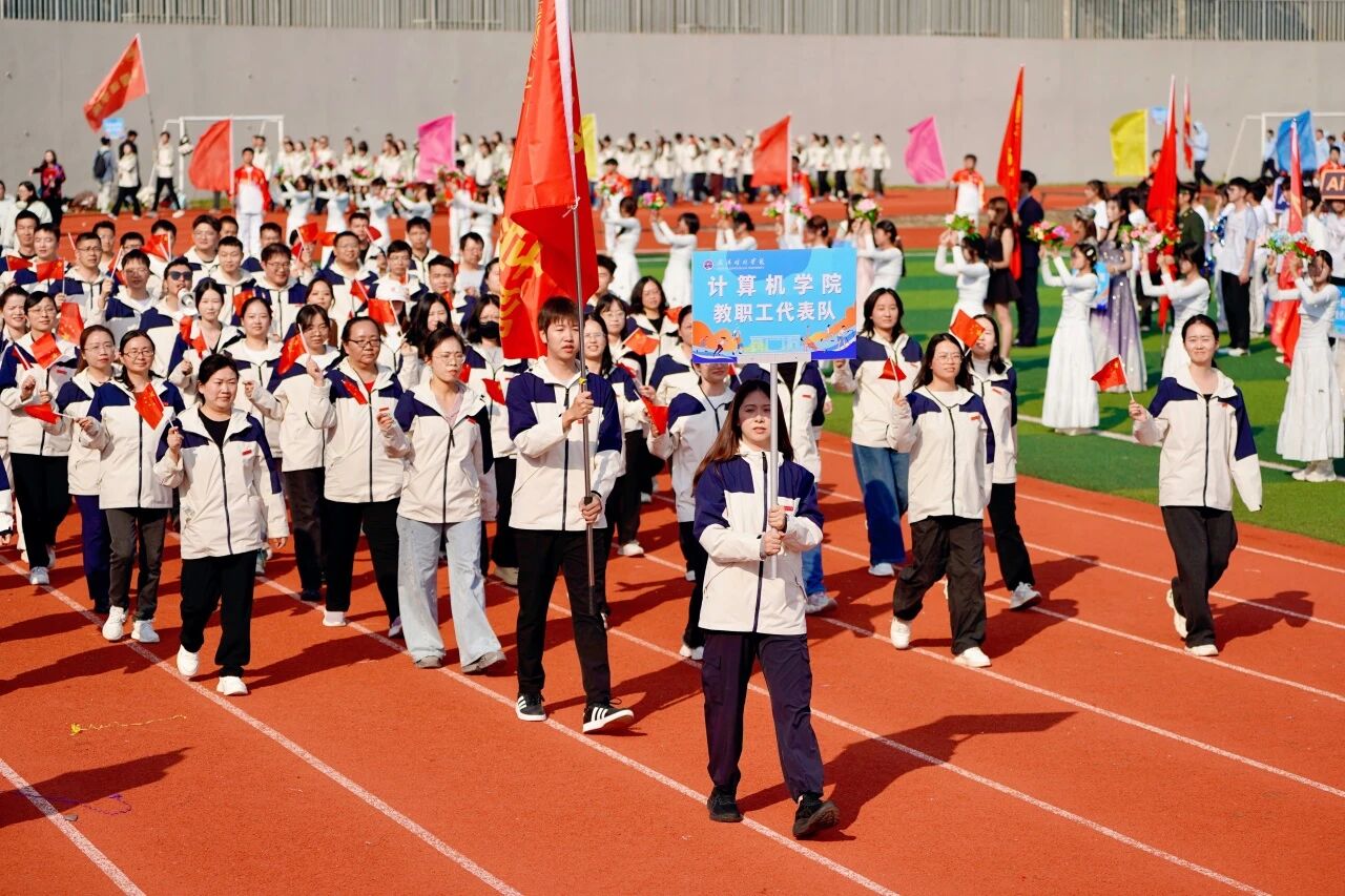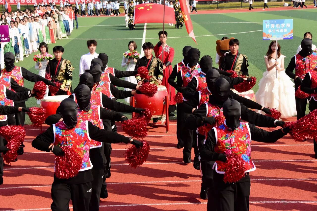 随着激昂澎湃的《运动员进行曲》响起,各支队伍依次入场。国旗护卫队英姿飒爽,校旗方阵步伐坚定。五彩斑斓的彩旗与鲜花方阵,如流动的调色盘,绘出晴川最美的秋日画卷。大学生自律委员会的同学们,以退役不褪色的军人风范,成为一道亮丽的风景线。各学院学生方阵更是“八仙过海,各显神通”,教职工方阵也一改平日的严肃,踏着轻快的步伐,向同学们挥手致意,引来阵阵欢呼。