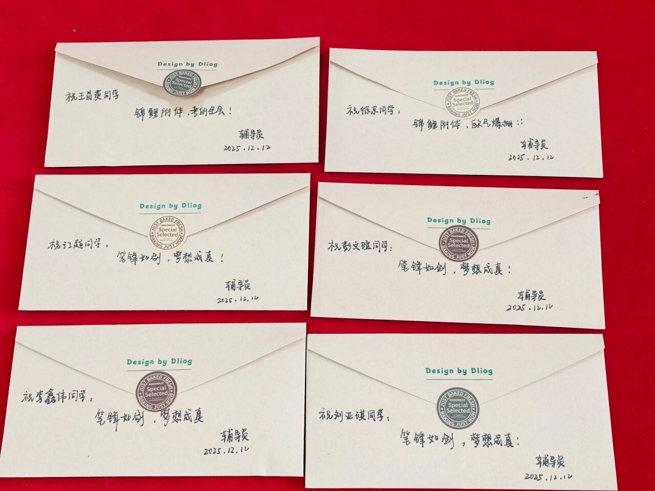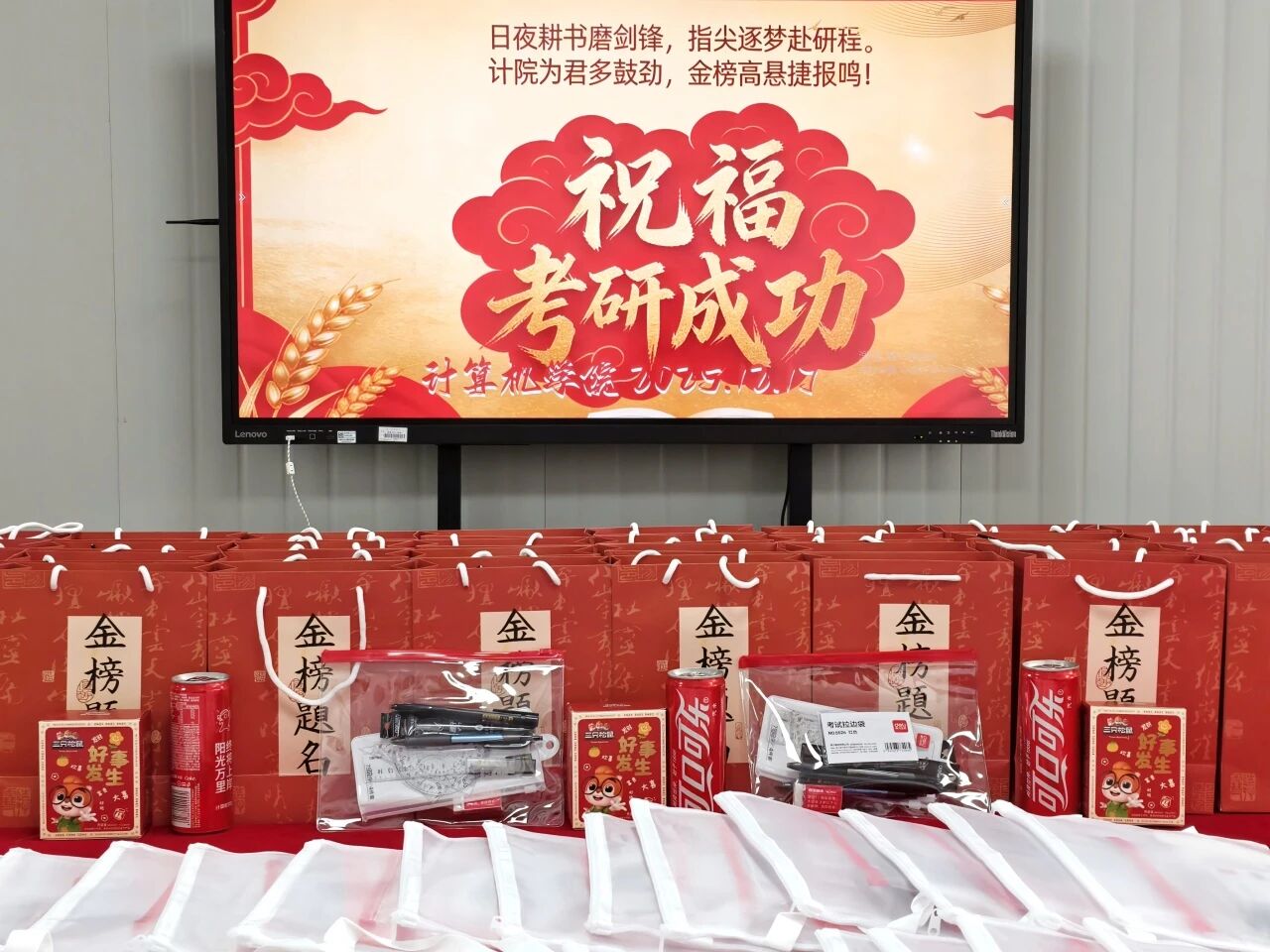 12月17日,计算机学院开展了考研慰问会,黄传河院长在慰问会上动情说道:“你们桌上高高的笔记、墙上的计划、满屋的咖啡杯,都是奋斗的印记。”学院为学子送上金榜题名礼袋与寄语信封,“伏案时光终成底气”“愿以笔为剑开新境”等话语,化作考前最温暖的勉励。