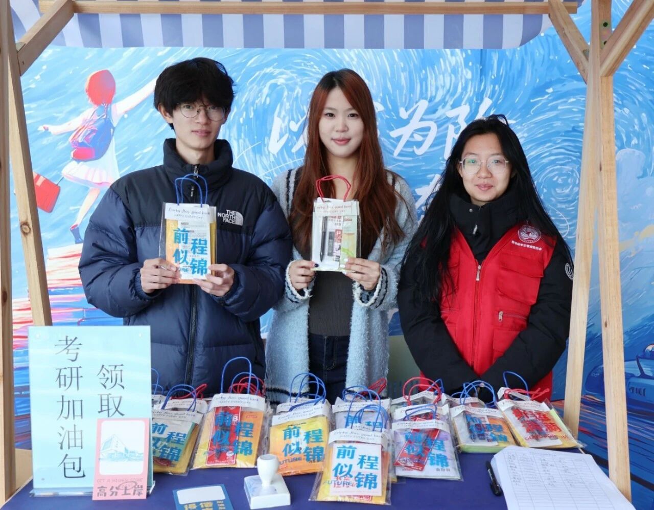 图书馆开展“研途相伴·温暖上岸”系列活动,发放内含祝福卡片、答题卡与暖暖包的加油包;设置“心愿墙”与“研途补给站”,提供免费文具,倡导专注、自律的学习环境,以无声的细节支持每一位专注备考的学子。